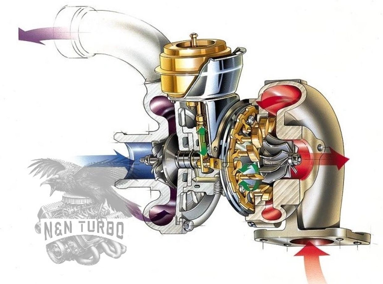 Турбіна — це пристрій, який використовує енергію вихлопних газів для нагнітання додаткового повітря в циліндри двигуна. Це дозволяє збільшити кількість кисню, необхідного для згоряння палива, що, у свою чергу, підвищує потужність двигуна без збільшення його об’єму.